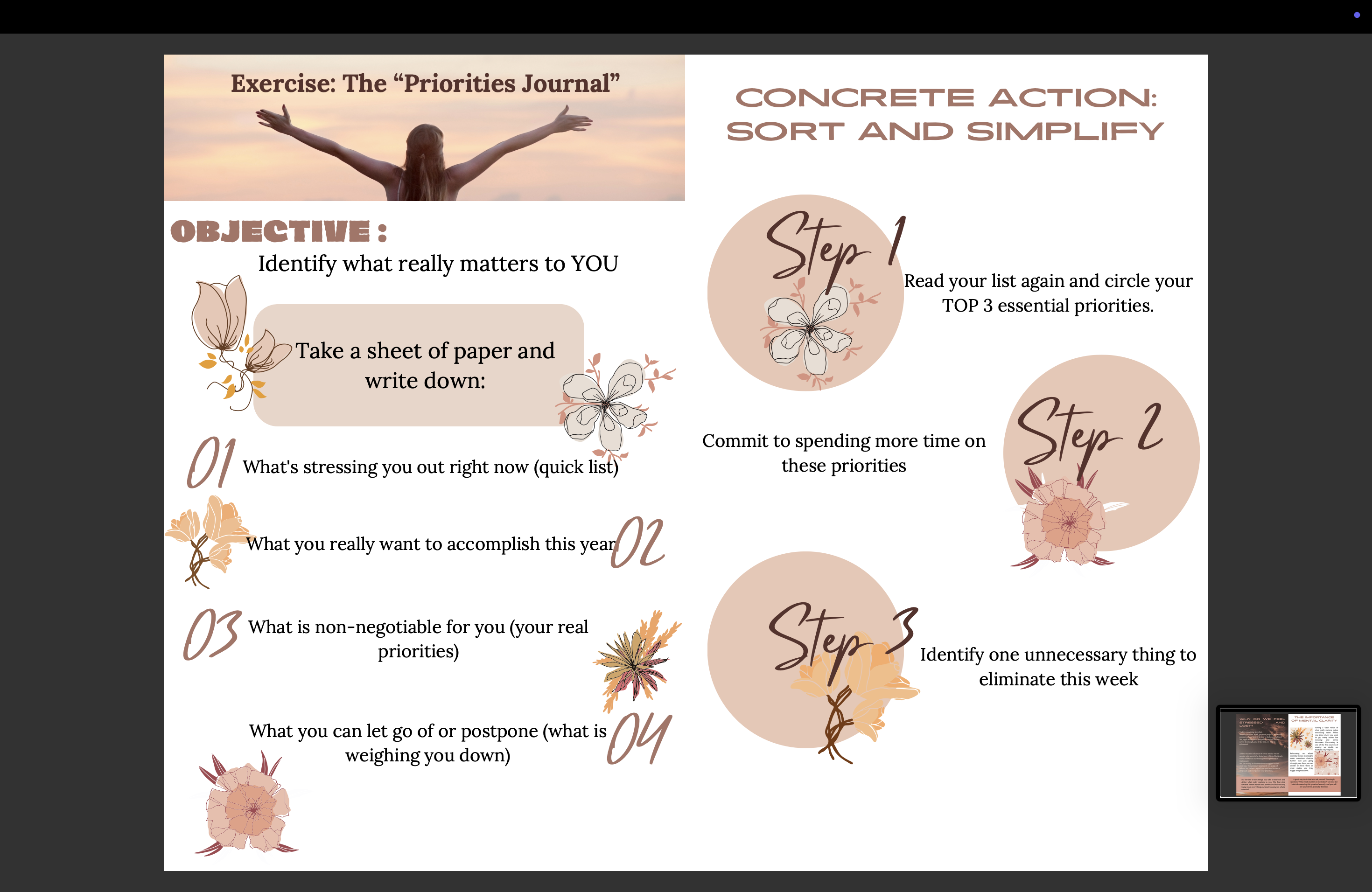 Are you feeling stressed and overwhelmed? Do you want to move forward without tiring yourself out and achieve your goals without procrastinating? This guide is for you! You'll learn how to manage your fears, boost your motivation, and succeed with effective organization.